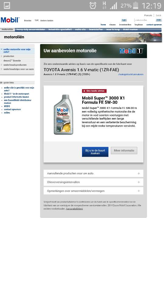 Mobil Türkiye'ye girin hangi yağ diye aratın sizlere mobil 1 0-40 full sentetik yağı tavsiye ediyor ok.Şimdide Mobil.nl girin mobil Hollanda'da ki sitesine oda aynı motor için avensis t27 1.6 valfmatic için mobil 3000 5-30 zu tavsiye ediyor ve bu ya çok daha ucuz acaba toyota Türkiye de olmak şartıyla bunlar bizim yiyiyor.