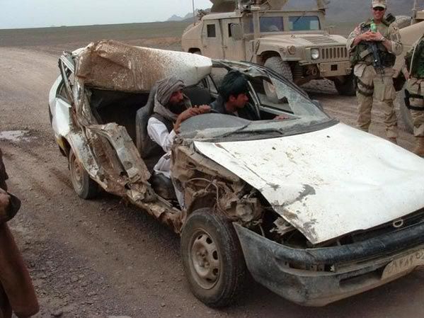 bu fotoğrafa bakarak konuşulması gerekenin toyotanın sağlamlığı olduğu kanaatinde değilim. büyük bir tankın önünde ağlayan küçük bir kız çocuğu görmekten farklı değil bu fotoğrafı görmek...