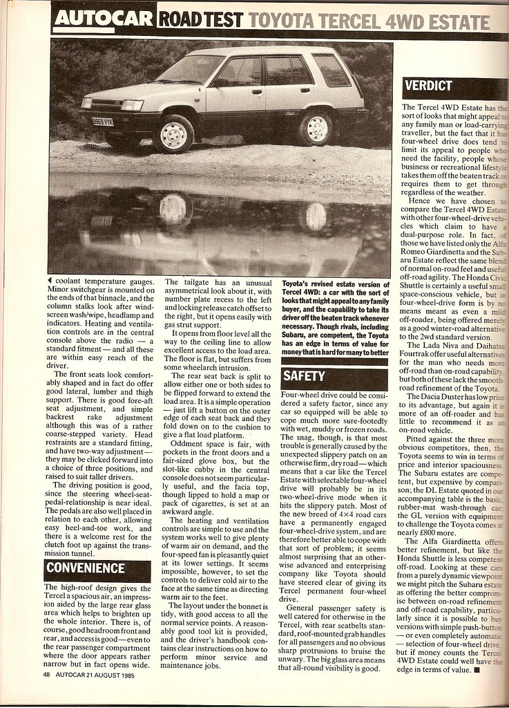 Konu: Toyota Tercel 4WD (Bilenler için Nostalji Bilmeyenlere Bilgi) (Okunma sayısı 1996 defa)