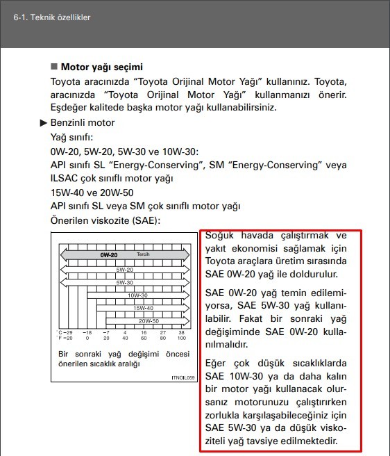 Kullanıcı el kitabınızda Benzinli Motorlar için 5W30 kullanın mı diyor? bence aşağıdaki linkten aracınızın kullanıcı el kitabını bularak yeniden kontrol edin https://turkiye.toyota.com.tr/KullaniciElKitabi/KullaniciElKitabi.aspx