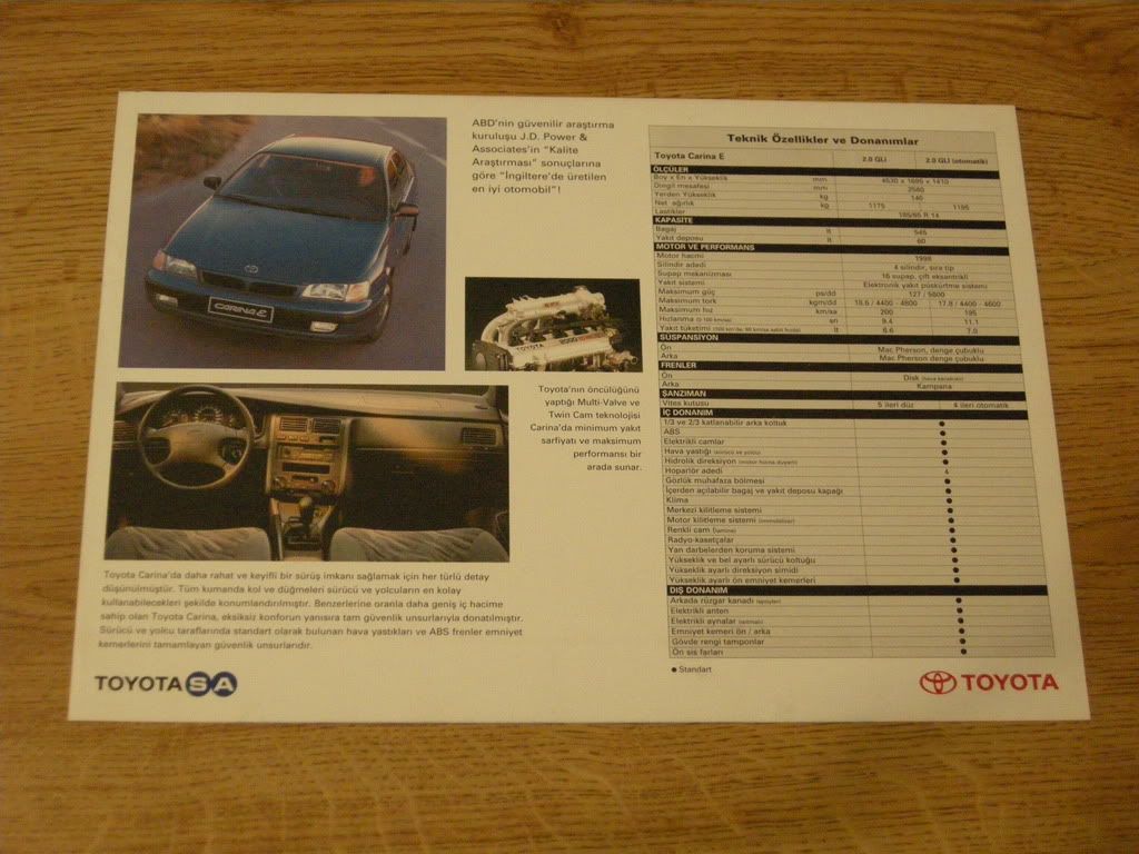 ST191 Corona'lar 128hp (130ps), ST191 Carina ve ST220 Avensisler 132hp (136ps)'tir.