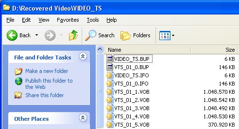 Büyük boyutlu olan vob dosyalarda, görüntü ve ses vardır. Diğer IFO ve BUP dosyaları menüyü oluşturan parçalardır.