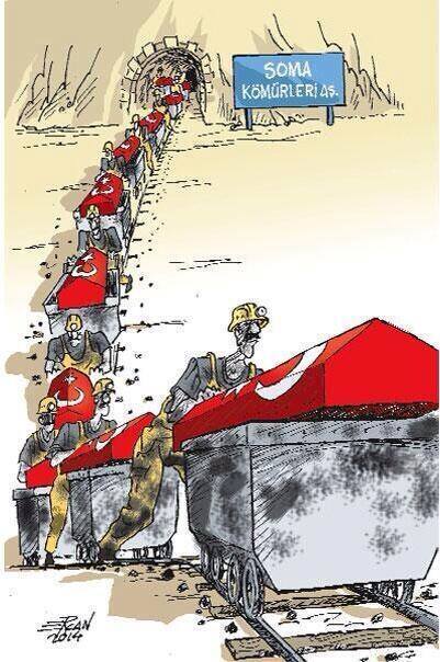 19 Mayıs kutlamaları iptal edilmiş olup törenler anma babında yapılacağı açıklanmıştır.Siyaset yaşamın ta kendisidir.Siyaset yapmak için politikaların olması gerekir.Mevcut iktidarın polikalrından ise NEFRET ediyorum.Atalarımın yaşadığı (Osmanlı ) bu güzel cografyanın gerekse doğduğum ve soydaşlarımın yaşadığı ülkenin (Suriye ) harap olmasına direkt katkıda bulundular.Hayırdan değil Şer den yana oldular.Hak'tan yana değil iblisten yana oldular ve Türkiye yi ileri değil geri götürdüler.Tepki politikalara olmalıdır.Yönetenler gidip madende çalışmadığına göre oranın denetiminide kendisi yapmamıştır.ANCAK gelen mühendislik raporu uygun değildir olduğu halde çalışma izni verdi ise ki verdi birinci derecede suçludur.Türkiye Cumhuriyeti Kanunlarına göre şuçu mahkemece tespit edilmemiş herkes şüphelidir der.Adam sokak ortasında birini vurur.cinayete herkes şahittir,kamera görüntleri bile var üstelik katil evet ben vurdum demekte iken kanun gözünde o kişli katil değil şÜPHELİ Haaa şüpheli öylemi ?Edeyim kanunlarımıza o halde (herkes ...yım demek istindiğini bilir ama öyle derse ceza alır.bu kurala da ıçayım)Sosyal politika görmek isteyenler 1929 yılında tüm dünya ekonomik krizde iken % 30 büyüyen genç Türkiye ekonomisine ve onu Yönetenlere baksınlar.İsmail Hakkı Tonguç bir okulu teftiş etmektedir.Bir öğrenciye soru sormak üzere döndüğünde öğencinin ayakları titrer ve kekeler.Tonguç öğretmen ve müdüre döner.Sert bir tavırla---Hocam sen bunlara bıurak fizik kimya öğretmeyi önce birey olmayı öğret gerisini zaten getirirler.o konuşamayan öğrenci kimdi dersiniz......Tonguç'un sonu ne oldu dersiniz.....Bunları bize Türki tarihi ve Atatürk dersinde öğrettiler komik olanda bu ders Tükiyede yasaklanmıştır.Kızacaksanız önce eskilere hala gerçekleri göremeneyenler se kafalarını kumdan çıkarıp kendilerine kızsınlar.Ölümün zengini,fakiri yoktur.Ölümün gavuru müslümanı yoktur.Ölümün dişisi erkeği yoktur.Ölümden kaçış yoktur ki realisit hiç kimse kaçmaya çalışmaz. Ama ölüme sebeyiyet verenlerler kaçsın zira onları büyük azap beklediği şüphesizdir.Siyaset insanlık ve ülkenin ilerlemesi ve daha huzurlu ,daha refah yaşanması için politikalarla olur.....Şili de venezüllada ve küba da işçiler Türkiye Soma da şehit olan kardeşleri için bir yas ve İLO (uluslararası çalışma örgütü) ya düzenlemelerişn gözden geçirilmesi ve Türkiyede uygulamaların iyiletirilmesini sağlamak amacı ile 1 günlük iş bırakma eylemi başaltmışlardır.Bu ülkelerde yönetim desteklemişken Türkiyede protesto edenlere biber gazı ikram edilmeye devam edilmektedir.