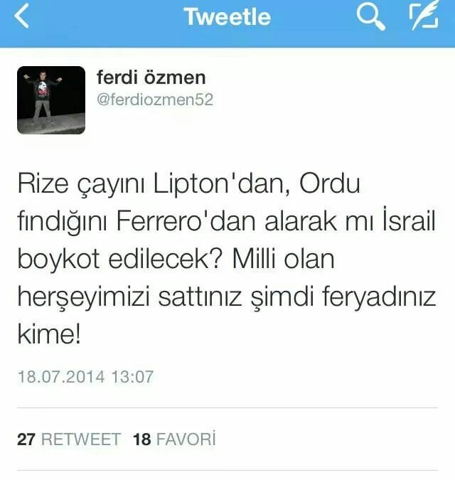 oradakilere Allah sabır versin... daha öncede bu şekilde boykotlar yapılmaya çalışıldı ve ne kadar başarılı olundu bilinmez,bu konu hitlere kadar dayanarak çok su götüreceği aşikar, detaya inmeden dünya bu zülüme, bu soykırıma ayak sürümeye başlamışken ben elimden geldiğince niyetimi belli ederek ürünlerini almamaya bilakis özen gösterir oldum,alacağım ürünün yerli eşdeğerini bulmak için hafta sonu 3 market gezdim, kendime eziyet gibi gözüksede bizlerin tepkiside bu şekilde olacak...tekrar hatırlatmak anlamında konuyu burada açan arkadaşa da teşekkür ederim...