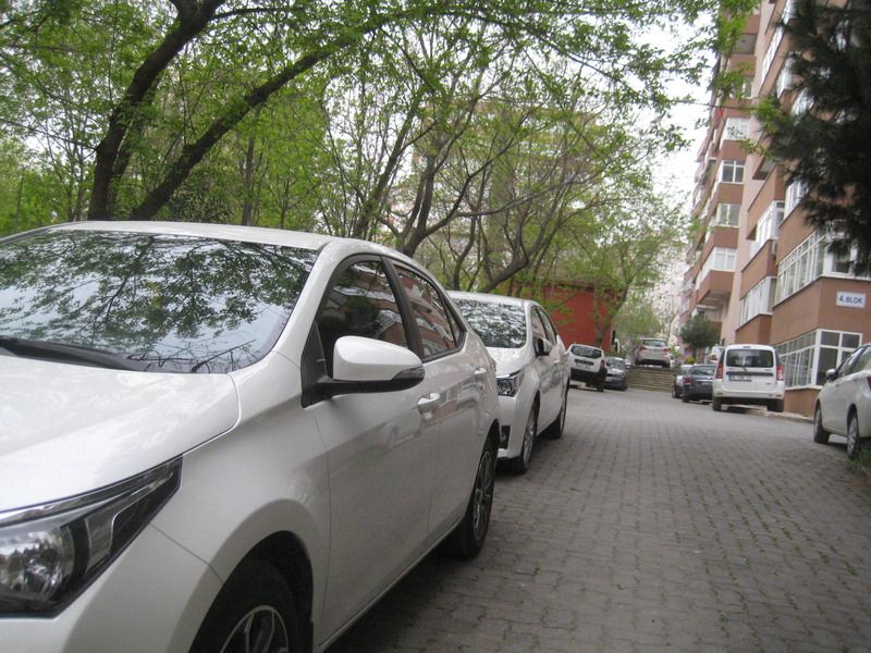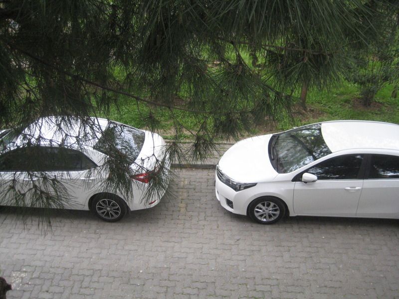 Diğeri temiz, daha yeni yıkanmış. Benim ki bir haftalık tozlu. 2-3 hafta da bir yıkatıyorum. Çünkü dibimiz inşaat, hafta içi kapıda duruyor ve toz oluyor.