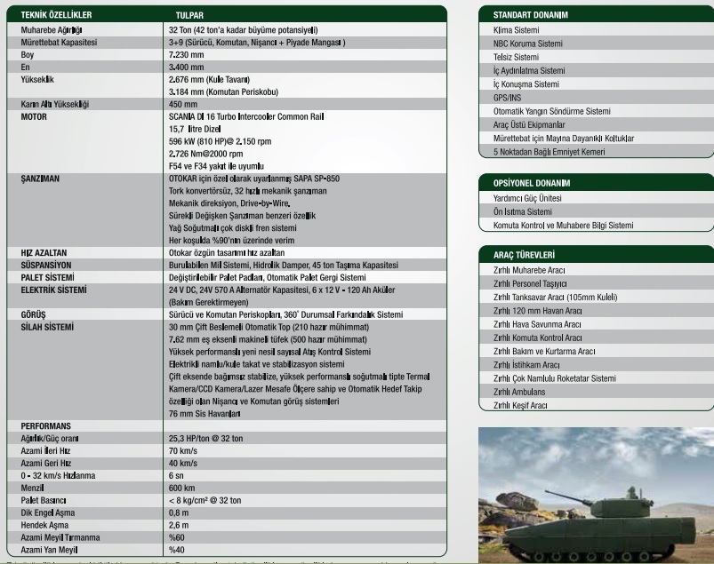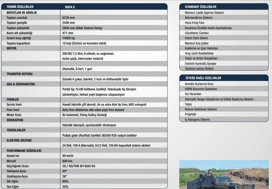 Diğer silahları: 1 adet Aselsan SARP, 1 adet 12.7mm ağır makineli tüfek