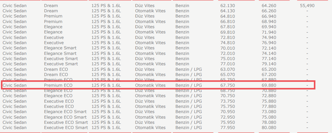 @Hamza Bingöl (34347) Hamza bey o liste fiyatlarına tüp dahil değil. Honda sağolsun 3 bin tl de tüp masrafı istiyor. Bana verdikleri fiyat tüp dahil fiyatıydı.
