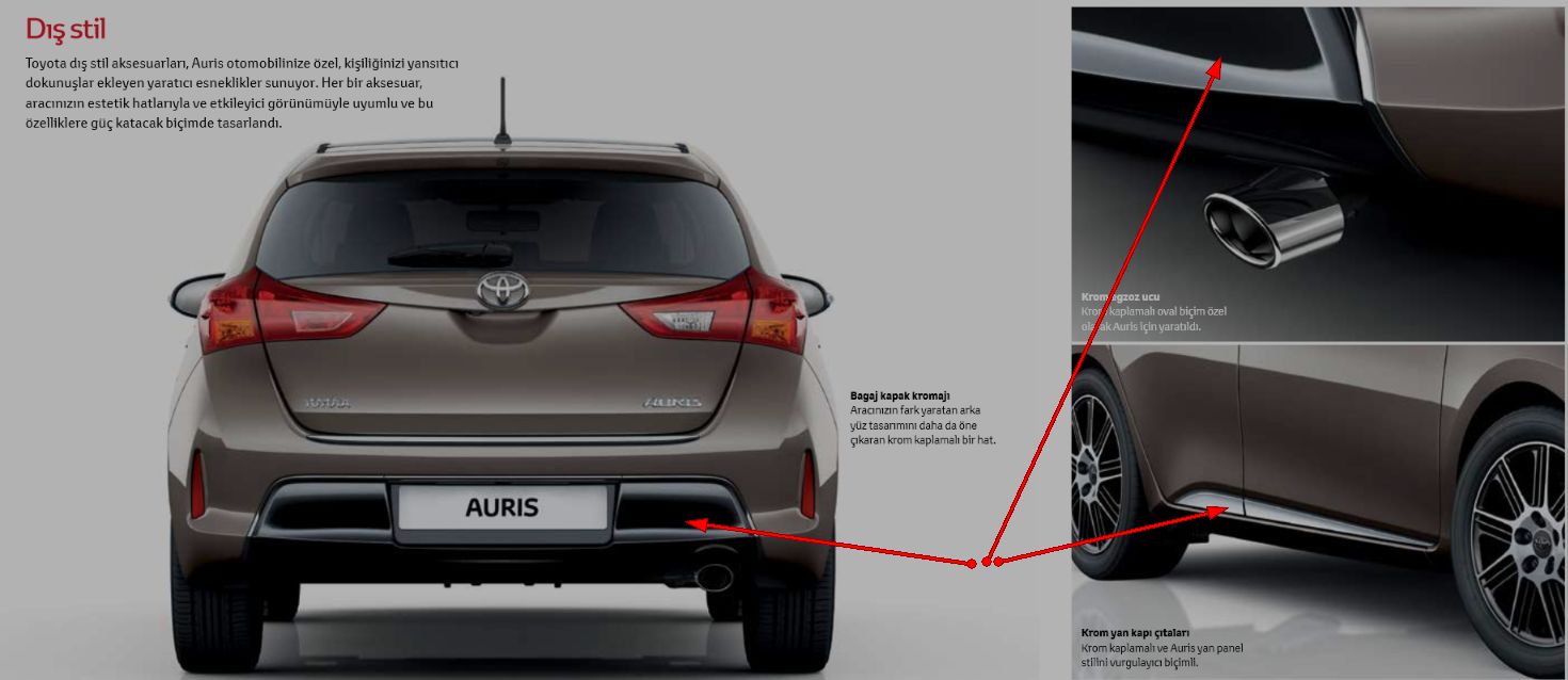 Keşke Toyota tek seçenek krom bu aksesuarın krom olanından farklı seçeneklerini de çıkarsa. Ya da kaliteli işler çıkaran başka bir firma buradan sesimizi duysa da bu aksesuarın istediğim şekilde olanını üretse.