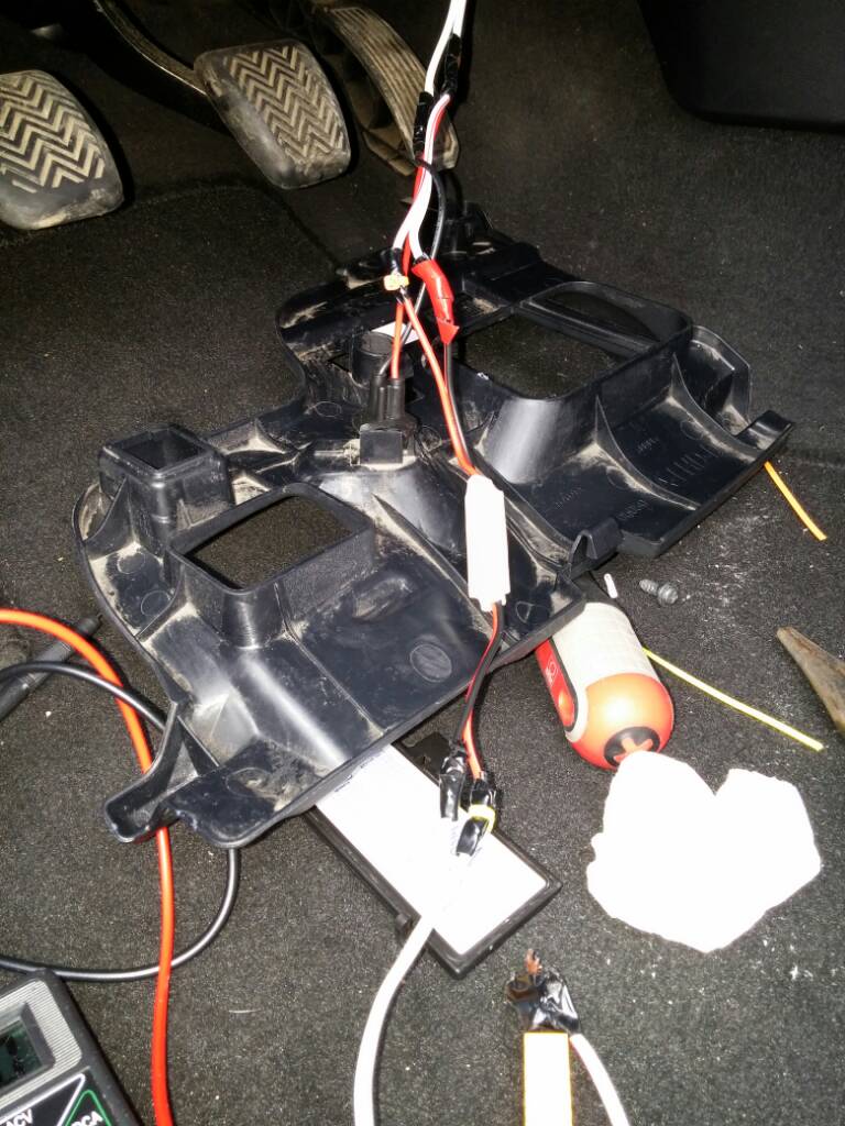 Elektriği gösterge lambalarına bağladım Tail yazan ilk sigorta. Böylece farlar açılınca yanıyor, sabahları zaten görünmüyor boşa yanmasın dedim. Araç çalışınca 14.5v geliyor.bu da ampulleri pert etti. Ben de dimmer takip 8v.dusurdum.istersem istediğim kadar kumandayla parlaklık ayarlıyorum. .