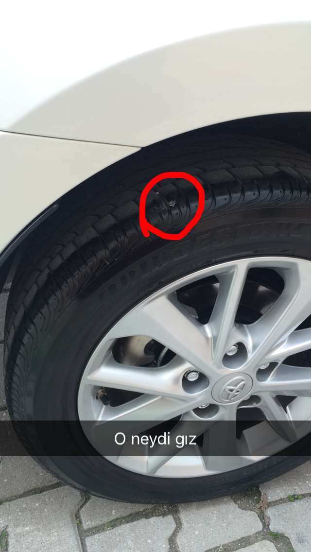 selam arkadaşlar, aşağıdaki resimde de gördüğünüz gibi 1 aylık lastiğim omuz-yanak arasından hasar almıştır, Bridgestone bayisi olan lastiği aldığım yerde onarımı yaptırmak ve yorumlarını almak için gittiğimde limitte oldugunu birşey olmayacağını söyledi, çok kararsız kaldım, sizin yorumlarınzı nedir.vida ince uçlu ve kısa idi, içerden bakıldığında ucu anca içeri yeni girmiş hatta 15 saatte lastiğin havası anca yarıya inmişti.teşekkürlersyg,