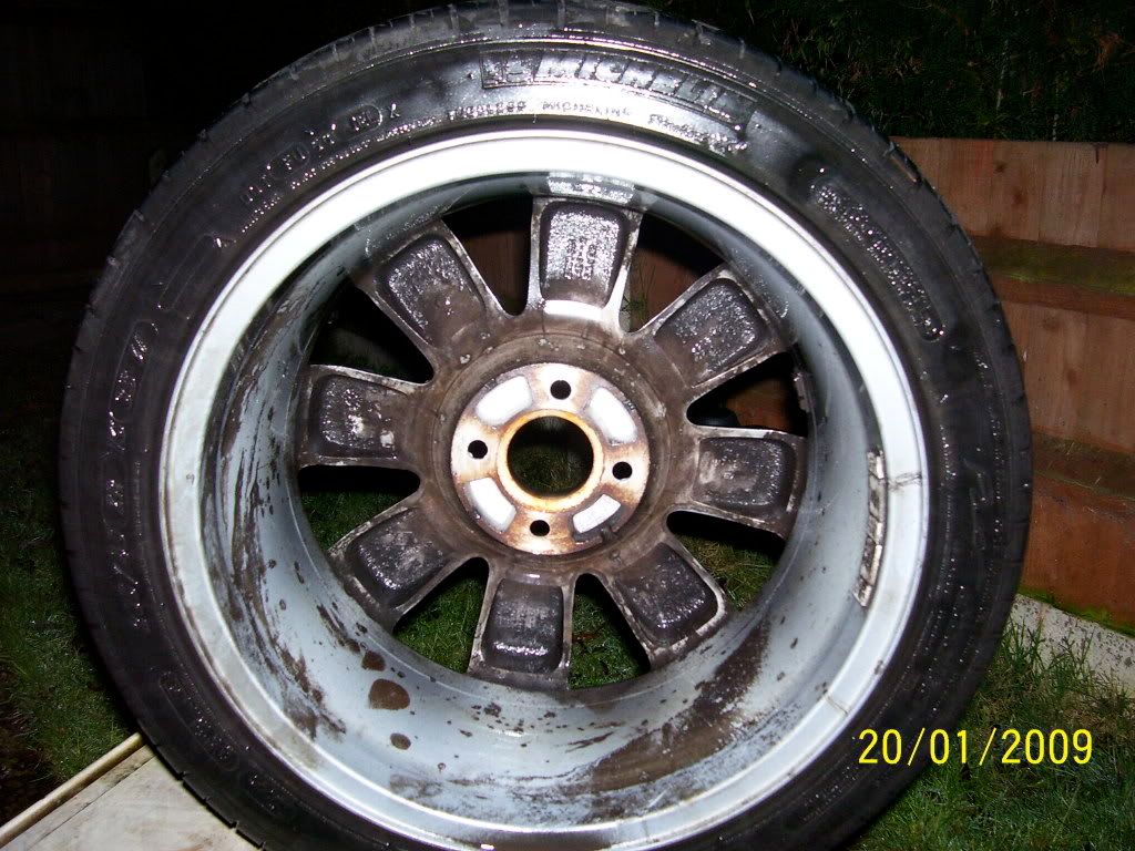 So a few bits and bobs missing, plenty of dirt and debris and some rust to sort out. Decided to give it a quick clean to see what else needed doing under the grime. Usual process applied. Had a look at cleaning up the Wheel trims to keep original and see how they would come up..........