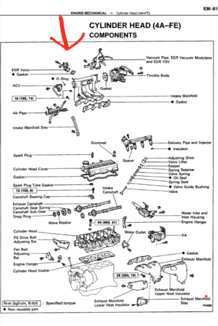 4A-FE engine repair manual' de EGR valfini emme manifoldunun sol tarafında gösteriyor ancak her tarafı didik didik aramama rağmen göremiyorum.