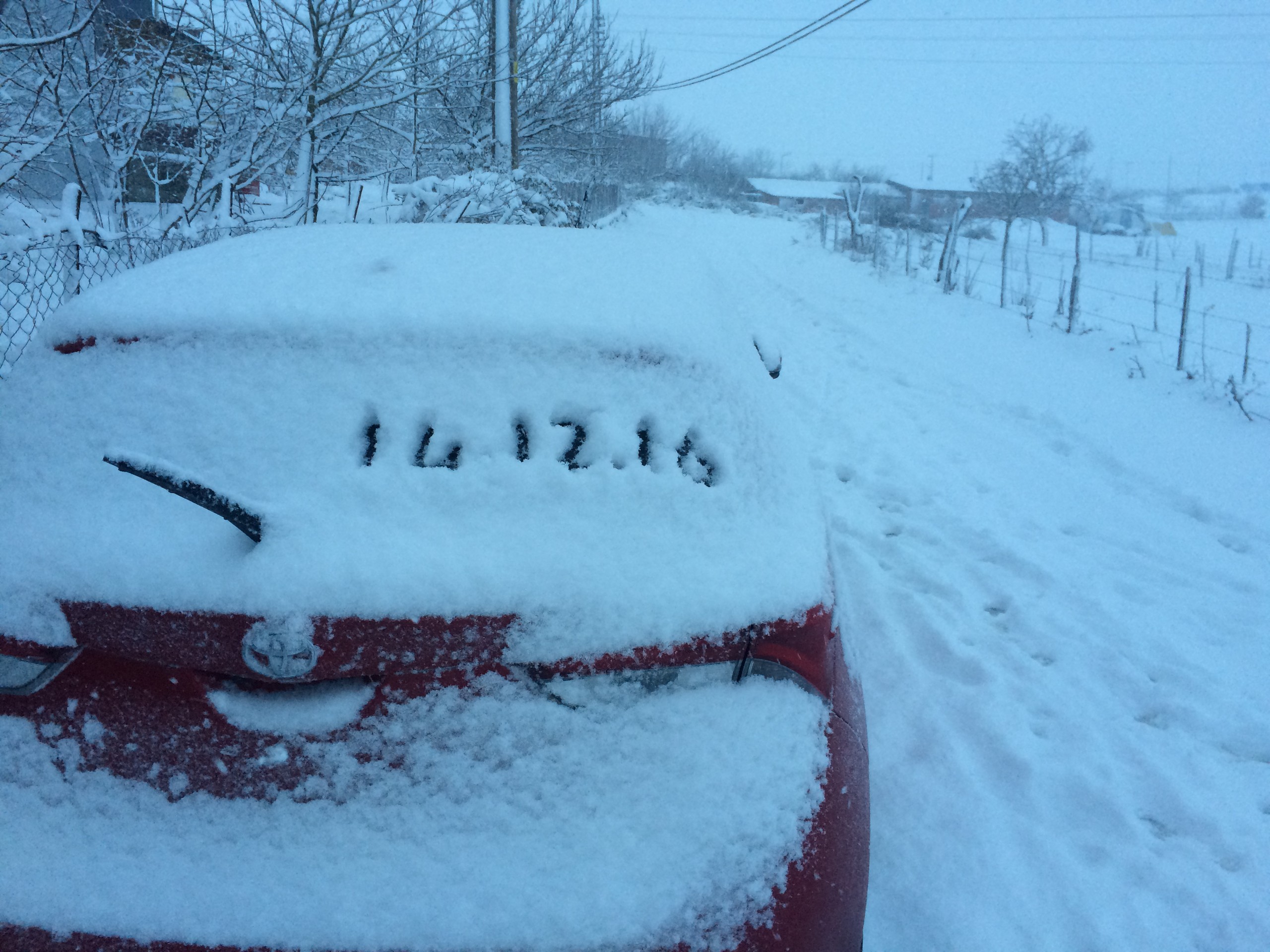 14.12.2016 | geceyi köyde geçirip sabah kalktığımda aracın üzerinde buzlaşmış 10-15 cm kar birikmişti yerlerde biraz daha fazlaydı sanki resimleri koyuyorum aracın üzerini rüzgar süpürmüş olabilir.