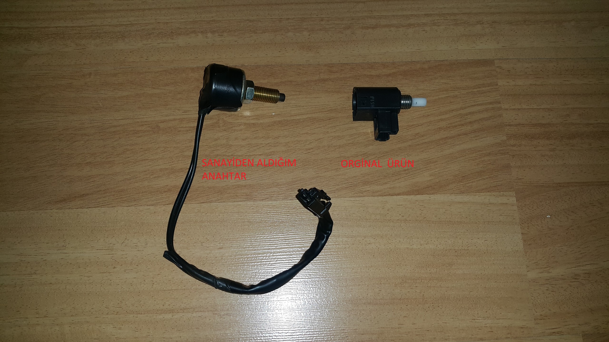 bende sanayiden aynı diş ve vidaya sahip daha uzun cift kontaklı mesafe ayaralanabilir 15 tl ye bir fren anahtarı aldım orjinal parcanın kablosunu onun acık kontaklarına bağlayarak kullandım.