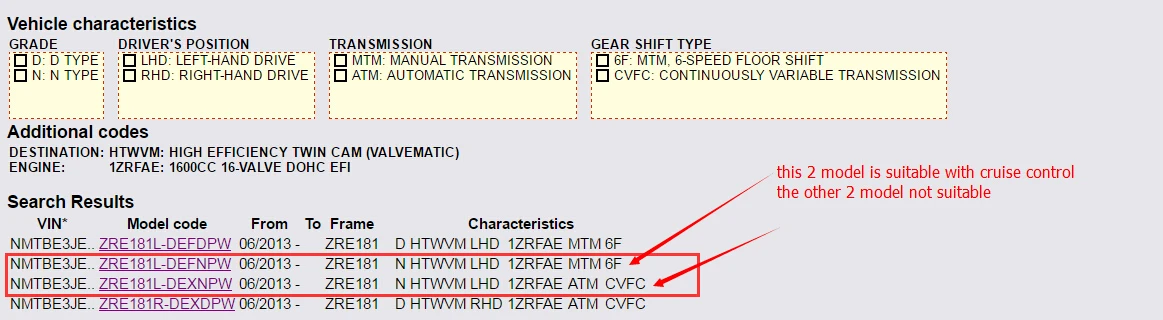 Aliexpress den Cruise Control kolu alacam.Adam kargo dahil 40 TL'ye gönderiyor.Yalnız aracın VIN kodunu kendisine gönderdiğimde bana şu resmi yolladı.