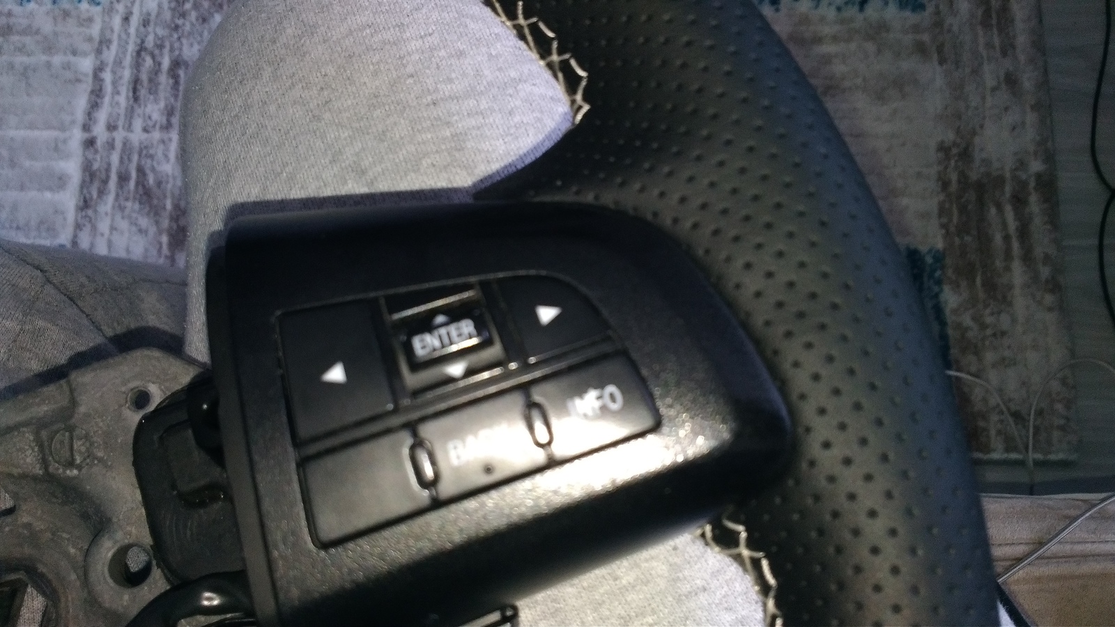 Anlatması belki kolay gözüküyor, ama yaparken çok uğraştırıyor. Direksiyon sökük olduğundan boynum ve bacağım arasında sıkıştırdım, bir yandan deriyi sıkıştırırken bir yandan da ipi geçirip o ipi gergin tutmak parmakları ağrıtıyor, beli sızlatıyor. Ama sonuç güzel gözüküyor. Potluk olan yerlere plastik parçalar geleceğinden dert etmedim. Zaten altına çift taraflı bantı koyunca potluk kalmıyor.