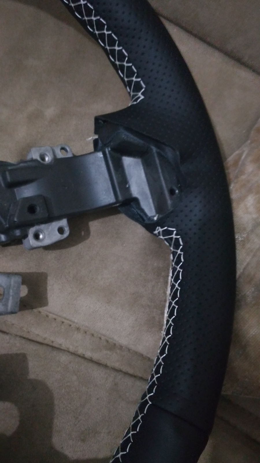 Sonuç güzel oldu. Hiçbir yerde potluk olmadı, en korktuğum şey buydu. Fakat tek bir sıkıntı oldu, o da bazı yerlerde deriler birleşmediğinden arasında biraz boşluk oluştu. Neyse ki çok göze batmıyor. Direksiyonu monte ettiğimde görüş açısından dikkat de çekmeyecektir diye düşünüyorum. Ürünü aldığım linkteki geridönüşlerdeki fotoğraflara baktığımda 1 kullanıcının daha böyle olduğunu gördüm.